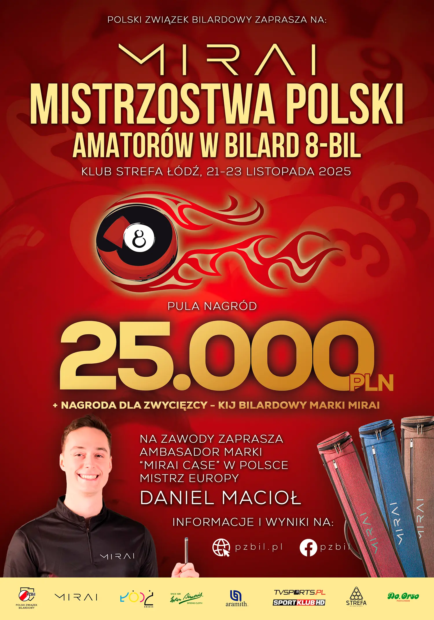 Miło nam poinformować, że japońska marka MIRAI została Partnerem Polskiego Związku Bilardowego. W ramach porozumienia firma stała się tytularnym sponsorem zawodów - Mistrzostw Polski Amatorów w Bilard 8-bil. Firma znana jest z produkcji światowej klasy futerałów na kije bilardowe, których twarzą jest m. in. drugi zawodnik światowego rankingu WPA, mistrz Polski i Europy Daniel Macioł (GKS Katowice) oraz medalista mistrzostw Polski juniorów Ksawery Marcinkowski (FORTIS Bilard Kielce). W Polsce partnerem z którym będzie współpracował PZBil będzie firma AXIS TWO oraz kluby STREFA.
