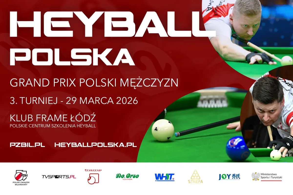 29 marca w Centrum Szkolenia Heyball w Klubie Frame w Łodzi rozegrany zostanie trzeci w sezonie turniej cyklu HEYBALL POLSKA GPP Mężczyzn.