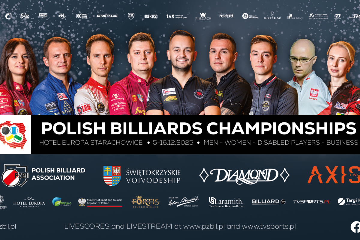 W hotelu Europy, w wyśmienitych warunkach rozpoczęły się finały Mistrzostw Polski Osób z Niepełnosprwanościami . W rywalizacji bierze udział 22 zawodników, zakwalifikowanych po całorocznych eliminacjach. Rywalizacja odbywa się w dwóch odmianach. Zawodnicy maja do dyspozycji osiem stołów DIAMOND przygotowanych przez firmę AXIS TWO . Wszyscy mogą śledzić zmagania ze wszystkich stołów na antenie TVSPORTS.PL